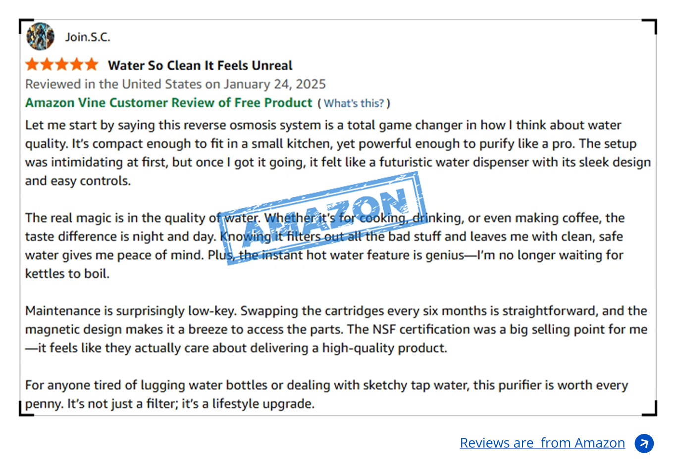 - Reverse Osmosis Technology – Removes 99.99% of pollutants, bacteria, and microplastics
