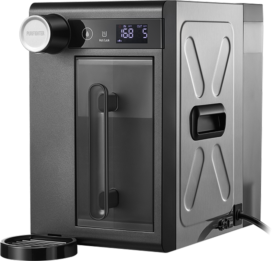Purifighter Gaiya™ is equiped with 800W rare-earth thick-film heater. It uses power only when dispensing – 1KWH boils 30+ gallons (120L) of water.