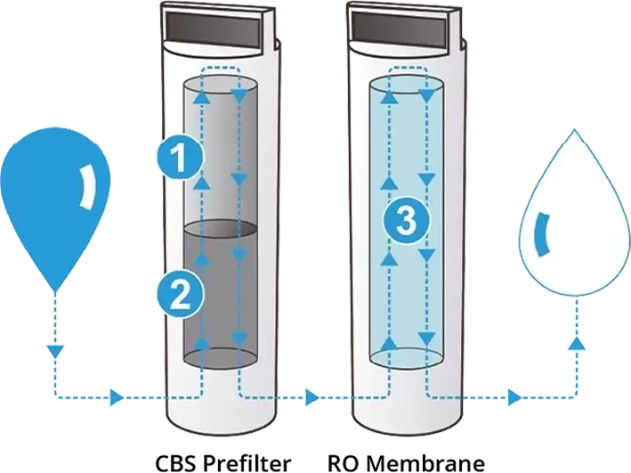 You want to know exactly how the filter set with high-performance pre-filter, CBS filter and RO membrane filters your water to the highest purity? On our technology page, we show you in detail how each filter stage works and together ensure absolutely clean, lime-free drinking water - simply explained and vividly illustrated.